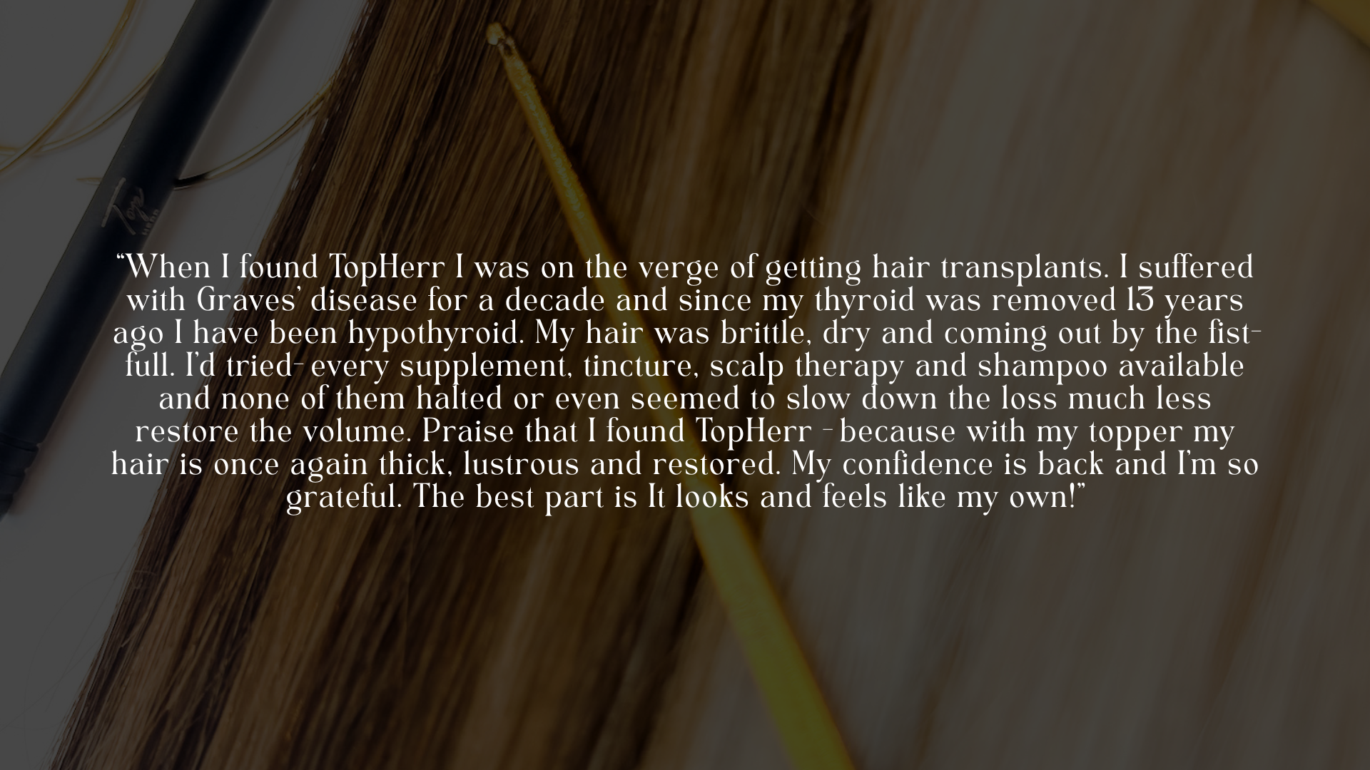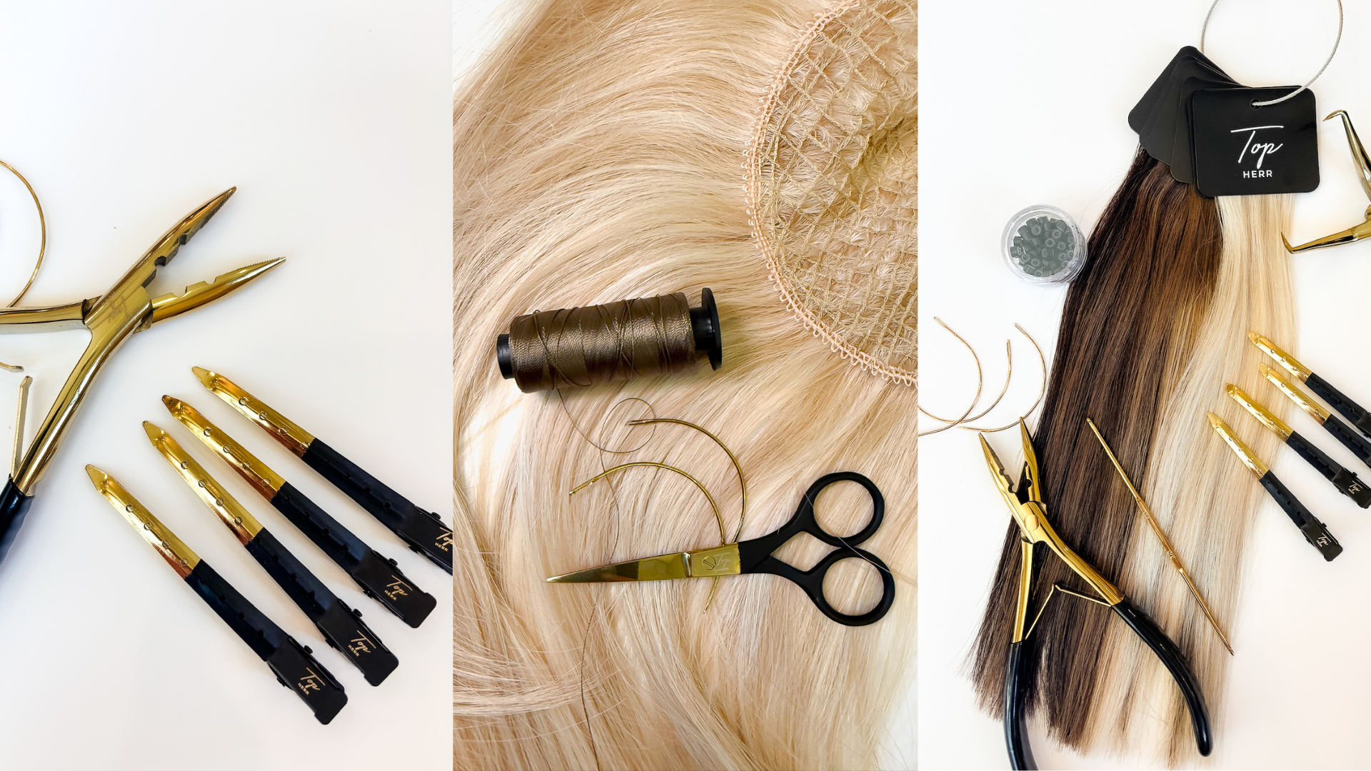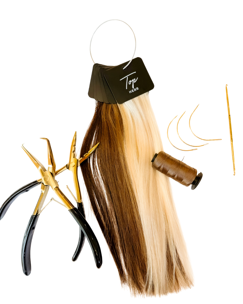 Our hair toppers are seamlessly attached to our clients' natural hair using our TopHerr sew-in method with silicone-lined beads and nylon thread. This technique ensures a