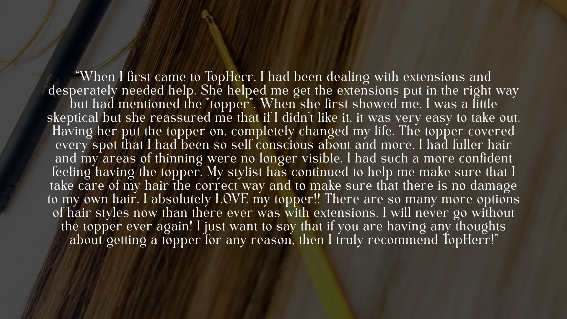 Our hair toppers typically have a lifespan of 6-9 months with proper at-home care and products recommended by your stylist